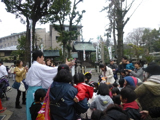 福豆の売り娘さん達は、振り袖姿に日本髪がよく似合っていてとてもきれい![]()